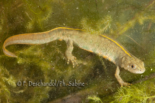 : Triton crêté italien (Triturus carnifex), femelle, Veigy (74), France.