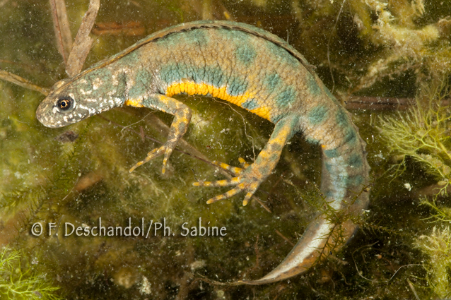 : Triton crêté italien (Triturus carnifex), mâle, Veigy (74), France.