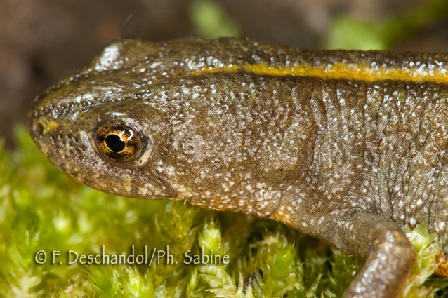 : Triton crêté italien (Triturus carnifex), femelle, Veigy (74), France.