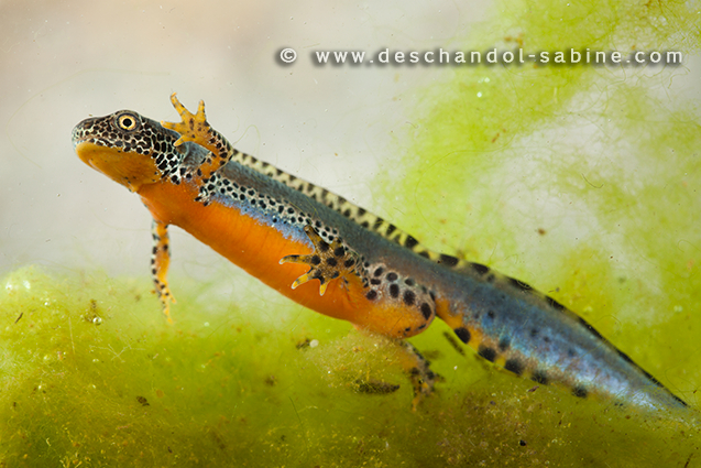 : Triton alpestre (Ichthyosaura alpestris cyreni), mâle, Cilleruelo de Bezana, Espagne.