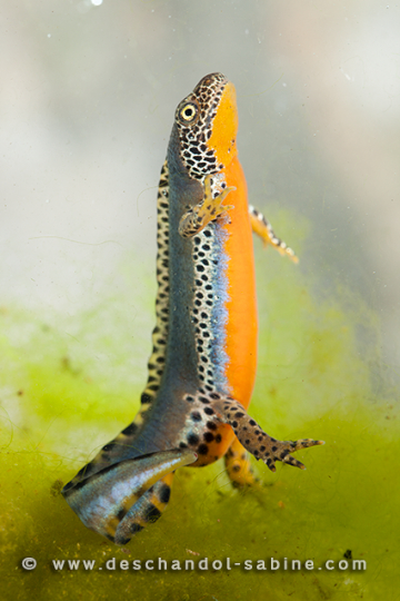 : Triton alpestre (Ichthyosaura alpestris cyreni), mâle, Cilleruelo de Bezana, Espagne.