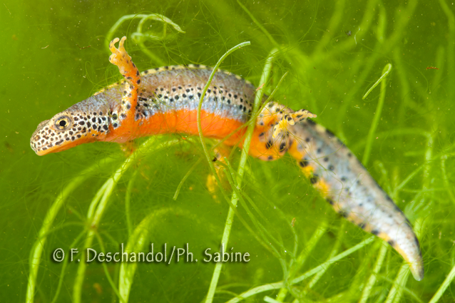 : Triton alpestre (Ichthyosaura alpestris cyreni), mâle, Cilleruelo de Bezana, Espagne.