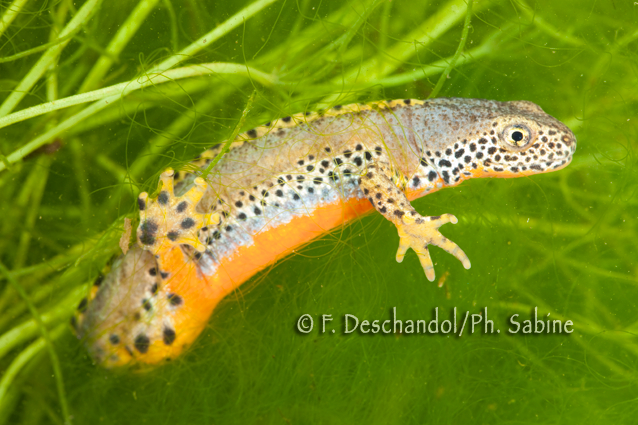 : Triton alpestre (Ichthyosaura alpestris cyreni), mâle, Cilleruelo de Bezana, Espagne.