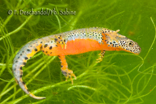 : Triton alpestre (Ichthyosaura alpestris cyreni), mâle, Cilleruelo de Bezana, Espagne.