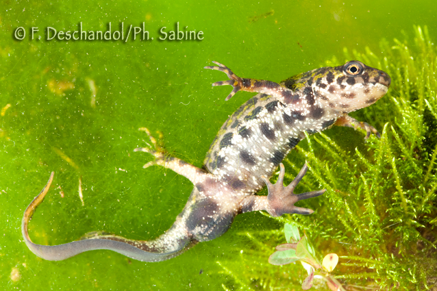 : Triton marbré (Triturus marmoratus), mâle, Santa Gadea de Alfoz, Espagne.