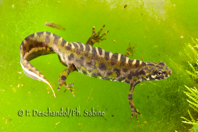 : Triton marbré (Triturus marmoratus), mâle, Santa Gadea de Alfoz, Espagne.
