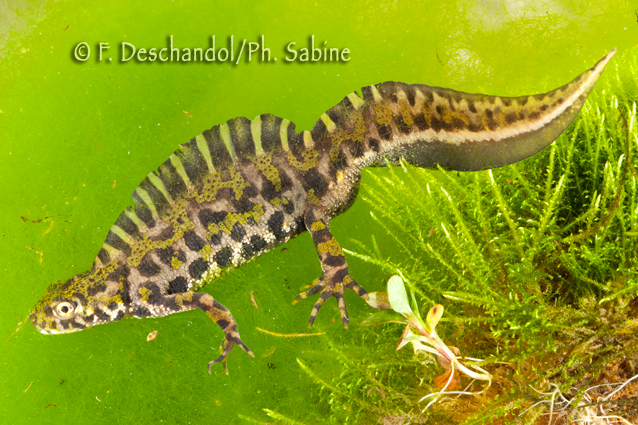 : Triton marbré (Triturus marmoratus), mâle, Santa Gadea de Alfoz, Espagne.