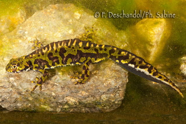 : Triton marbré (Triturus marmoratus), mâle, Manzanal de Arriba, Espagne.