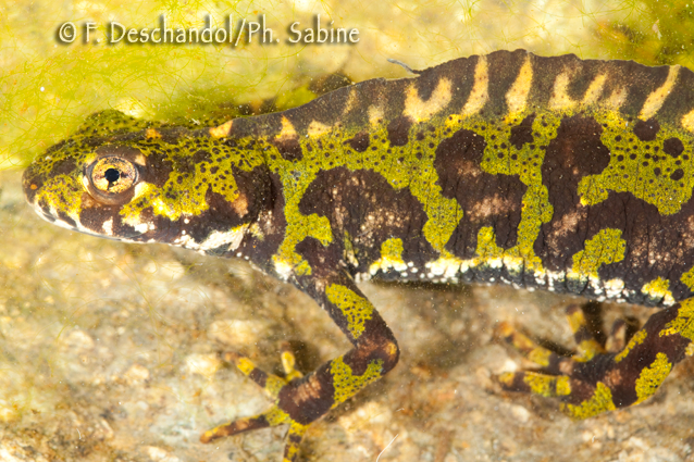 : Triton marbré (Triturus marmoratus), mâle, Manzanal de Arriba, Espagne.