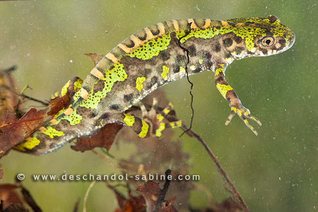 : Triton marbré (Triturus marmoratus), mâle, Peneda-Gerês, Portugal.