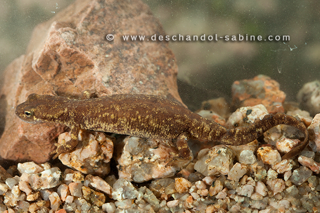 : Euprocte de Corse (Euproctus montanus), femelle, Bavella, Corse.