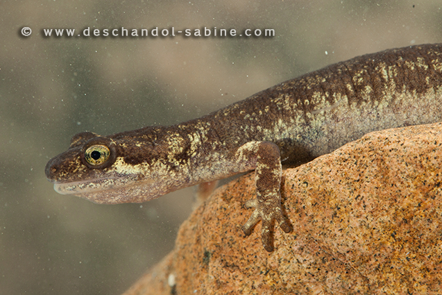 : Euprocte de Corse (Euproctus montanus), femelle, Bavella, Corse.