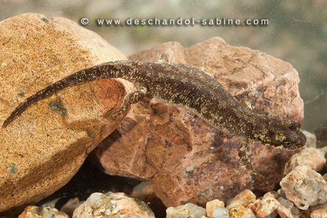 : Euprocte de Corse (Euproctus montanus), femelle, Bavella, Corse.