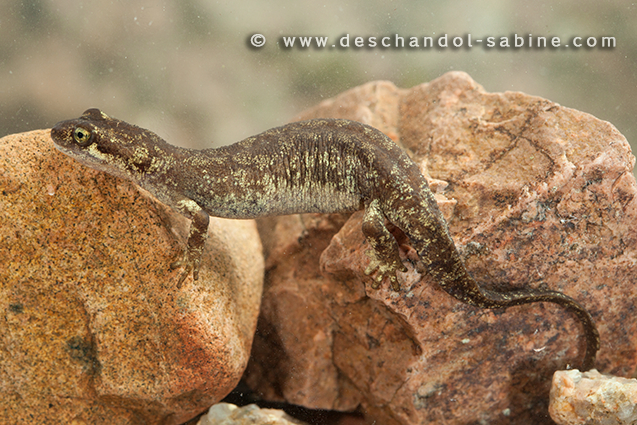 : Euprocte de Corse (Euproctus montanus), femelle, Bavella, Corse.