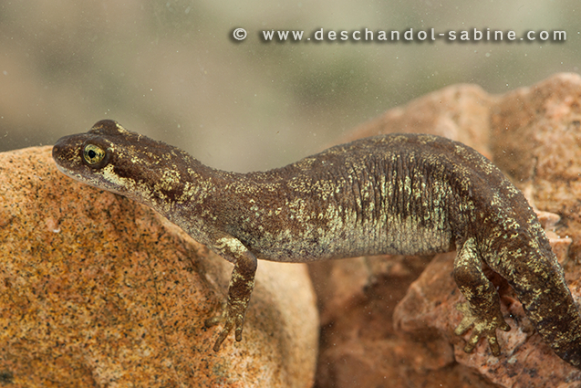 : Euprocte de Corse (Euproctus montanus), femelle, Bavella, Corse.