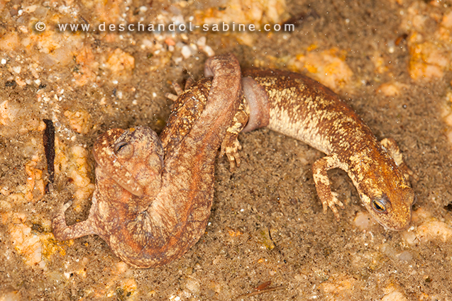: Euproctes de Corse (Euproctus montanus), amplexus, Bavella, Corse.