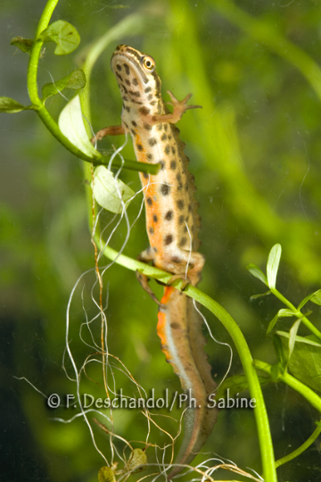: Triton ponctué (Lissotriton vulgaris vulgaris), mâle, Forêt de Brotonne (76), France.