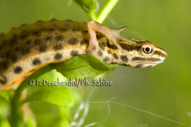 : Triton ponctué (Lissotriton vulgaris vulgaris), mâle, Forêt de Brotonne (76), France.