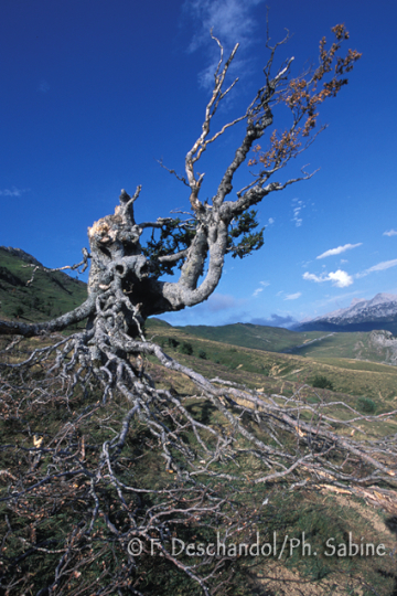 : Vieux tronc d'arbre cassé, Massif de la Pierre St. Martin (64), France.