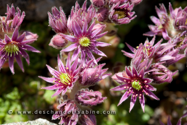 : Joubarbes des montagnes (Sempervivum montanum), Puymorens (66), France.